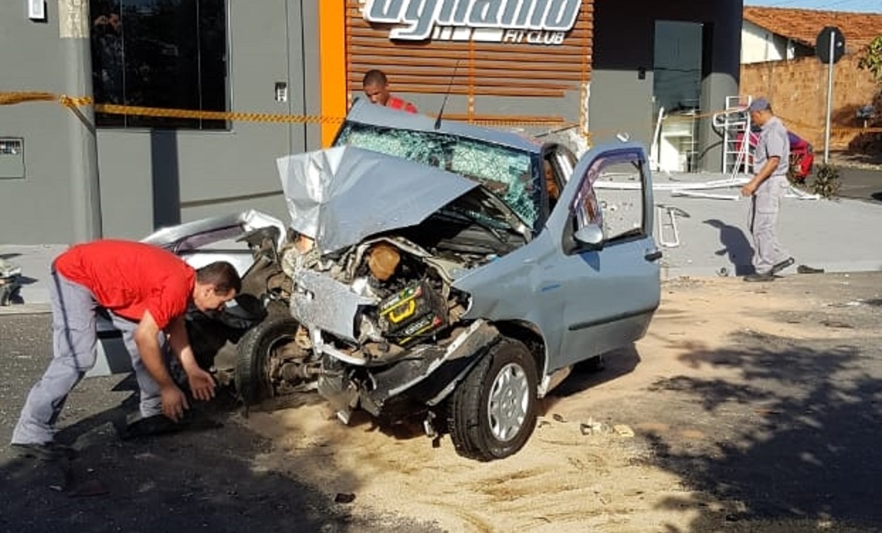 Segundo as informações obtidas, um veículo Fiat/Palio, de cor prata, ano 2007, com duas pessoas que trafegava no sentido centro – bairro, colidiu com o prédio onde funciona as instalações de uma academia, inaugurada há 15 dias.