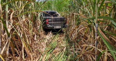 Foi feito o acompanhamento do automóvel e, em determinado trecho, o condutor acabou abandonando o veículo em um canavial. Durante a aproximação do carro, foi constatado que a placa de identificação estava alterada (FKU para EKU), se tratando de um veículo roubado na cidade de Tabatinga (SP) em data anterior.