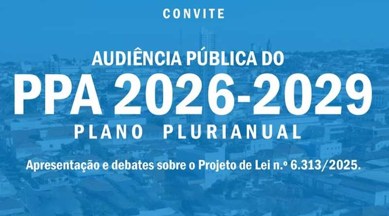 A Câmara Municipal de Taquaritinga convida toda a comunidade para participar da Audiência Pública que apresentará e discutirá o Plano Plurianual (PPA) 2026-2029. O encontro acontecerá no próximo dia 28 de julho, a partir das 19h, no auditório da Câmara, localizado na Praça Dr. Horácio Ramalho, 156.