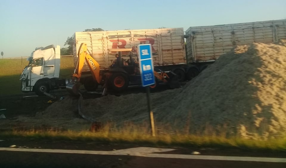 Segundo as informações obtidas, o motorista perdeu o controle do caminhão na alça de acesso do quilômetro 323 depois que um dos pneus estourou.