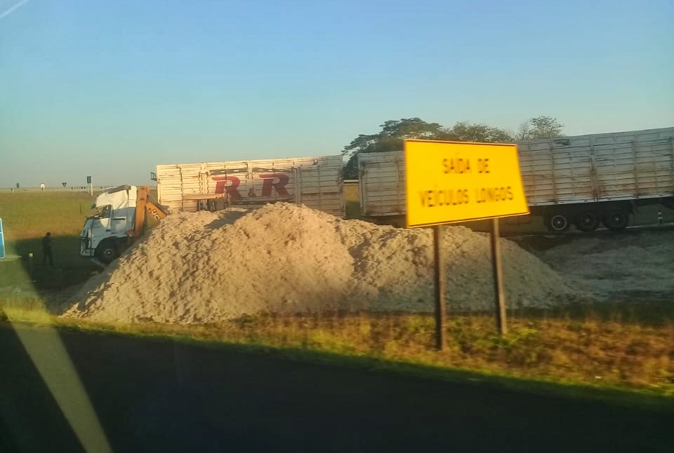 A Polícia Rodoviária de Itápolis (SP) informou que, no início da tarde desta segunda-feira (10), o motorista ainda se encontra no local à espera do recarregamento total da carga para poder continuar o seu trajeto e chegar ao seu destino final.