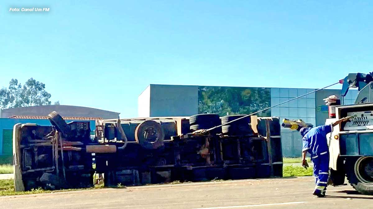Um caminhão tombou na manhã do último domingo (19), na Rodovia Thyrso Micali, em Taquaritinga, provocando lentidão no tráfego por algumas horas.