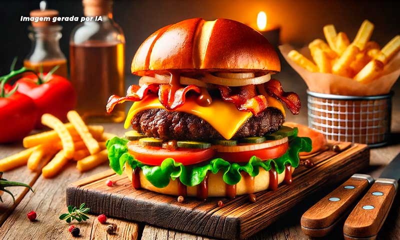 – Alô, é da hamburgueria? Quero um duplo com queijo empanado e cebola caramelizada, igualzinho ao da propaganda do painel. Por favor, não esqueça do refrigerante e da batata frita.