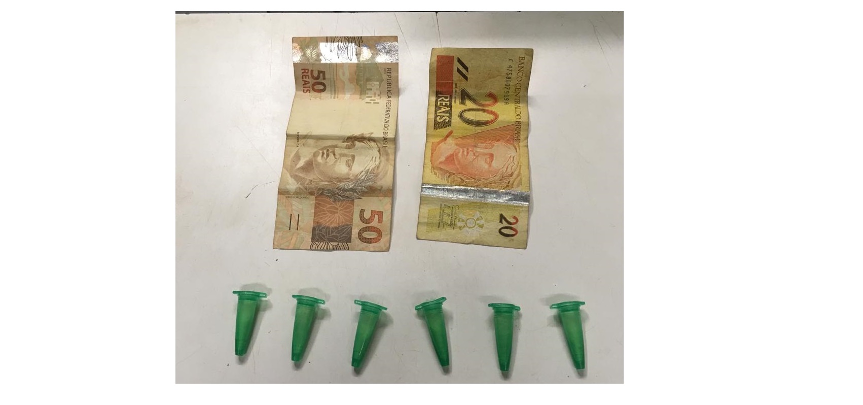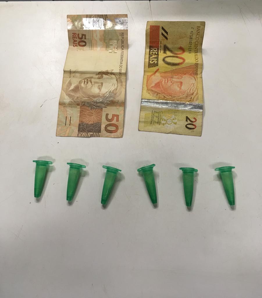 Um deles, ao perceber a aproximação da viatura, jogou um objeto no chão; ato que despertou a curiosidade dos policiais. Os jovens foram abordados e submetidos a revista pessoal, sendo localizada a quantia de R$ 70 em dinheiro e mais dois pinos de cocaína na posse dos garotos.