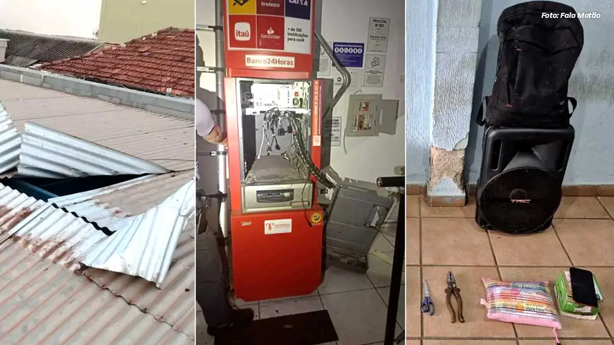 Durante a ação, dois suspeitos foram detidos dentro do imóvel. A porta de entrada da agência estava danificada e o caixa eletrônico ficou completamente destruído. Conforme apurado, os indivíduos já haviam separado diversos objetos para levar e tentavam retirar aparelhos de ar-condicionado do local.