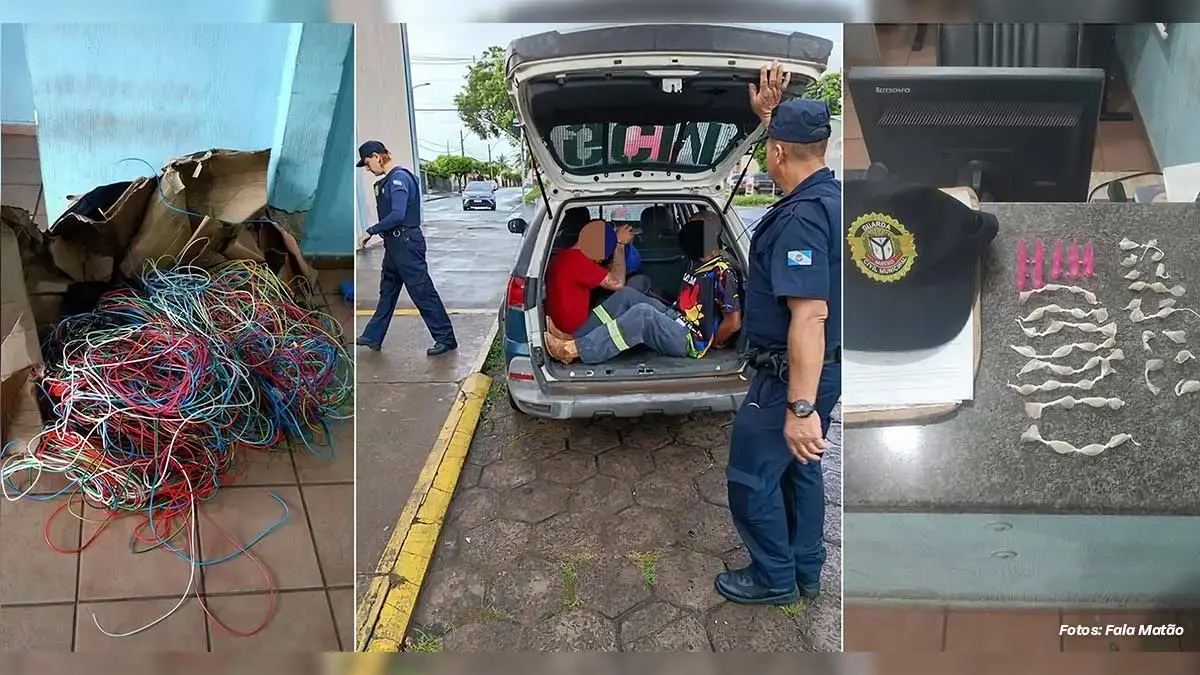 Dois homens foram detidos pela Guarda Civil Municipal de Matão na última quinta-feira (12), após serem flagrados com cerca de 40 quilos de fios supostamente furtados, além de drogas e ferramentas utilizadas para o corte do material.