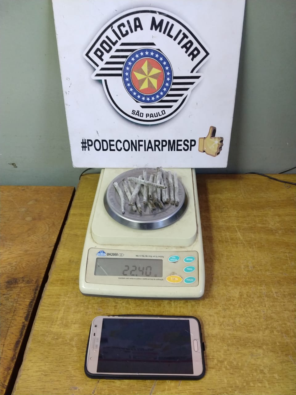O jovem foi detido nos fundos da referida casa, onde resistiu à abordagem policial e, em revista pessoal, somente um celular da marca Samsung foi encontrado com ele. O invólucro plástico com os entorpecentes foi localizado e apreendido.