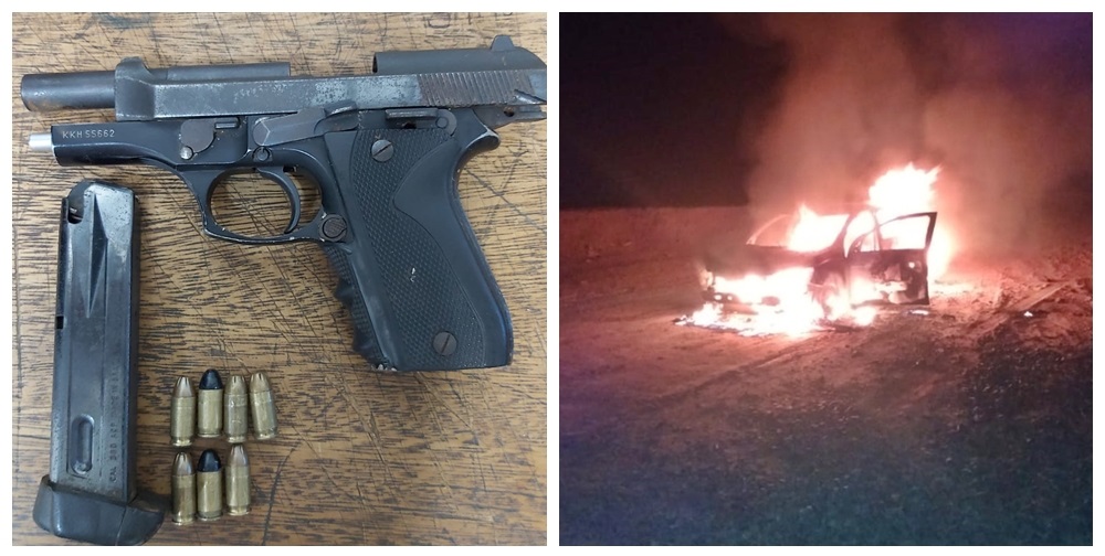 Também foram apreendidas duas armas de fogo (calibres 7.65 e 38) deixadas pelos assaltantes. Uma delas estava com o cartucho “travado”; ou seja, falhou no momento do disparo.