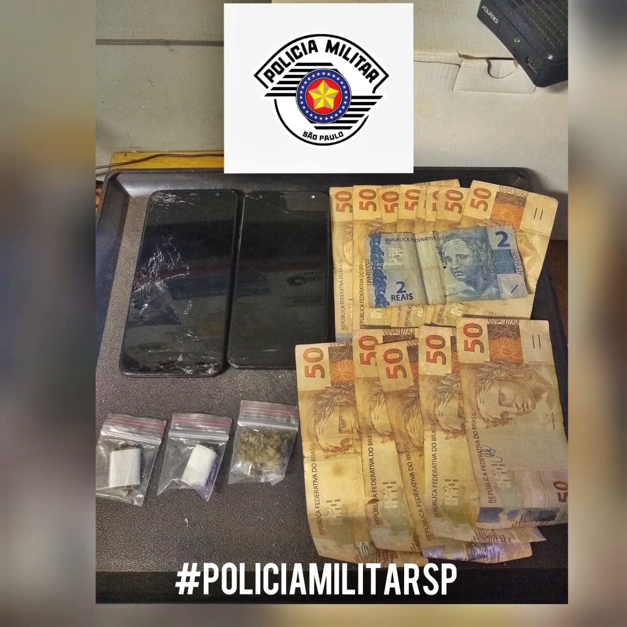 Na tarde de domingo (27), a Polícia Militar de Taquaritinga (SP) deteve dois jovens, de 17 e 19 anos; a dupla portava entorpecentes e um aparelho celular furtado.