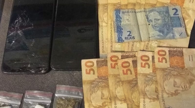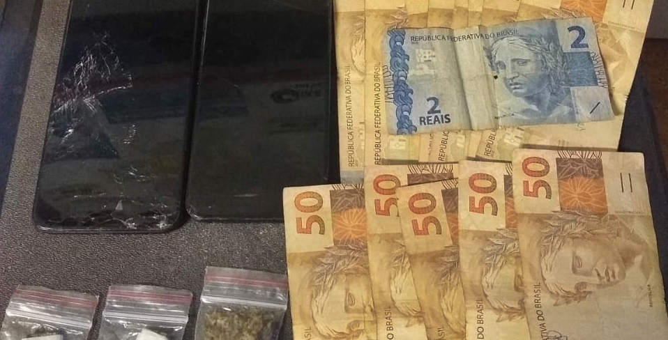 Questionado, o motorista disse que ambos possuíam três porções de maconha para uso; as substâncias ilícitas foram encontradas no interior do automóvel. Ele também guardava R$ 402 no bolso de sua bermuda.