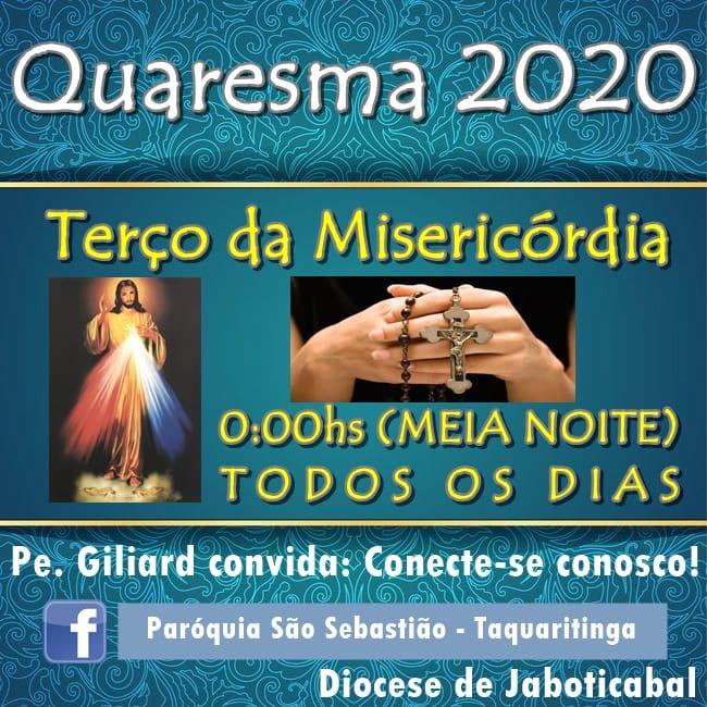 A Paróquia de São Sebastião de Taquaritinga (SP) informa aos fiéis que fará a transmissão do Terço da Misericórdia, através de sua página oficial no Facebook (clique aqui), no decorrer das semanas em que os fiéis vivenciam a Quaresma.