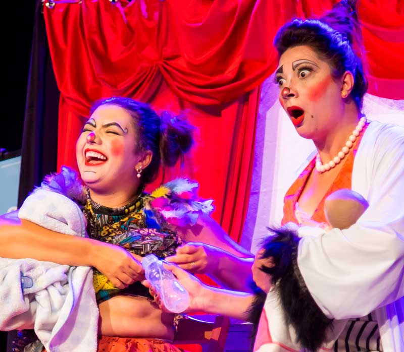 As duas palhaças mães que protagonizam a história dividem suas experiências de forma espontânea e encantadora, criando uma conexão imediata com a plateia, que se vê refletida nas situações cotidianas do universo materno. O espetáculo proporciona uma experiência divertida e acessível, acolhendo tanto adultos quanto crianças em sua narrativa vibrante.