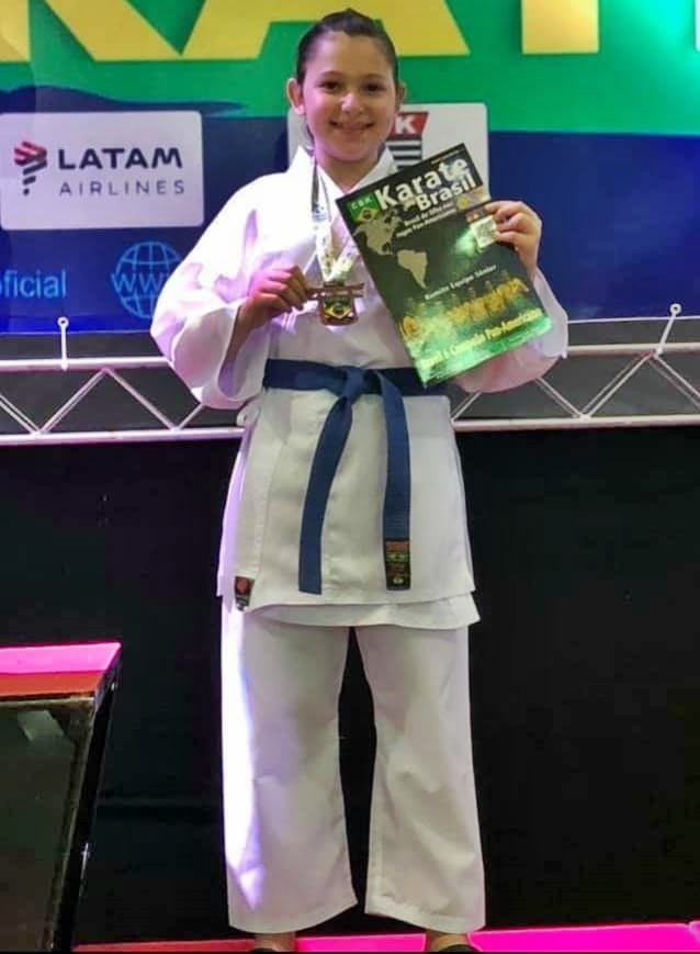 A karateca Maria Eduarda Ospedal, de apenas 9 anos de idade, está na final do Campeonato Brasileiro de Karatê. A disputa pela medalha de ouro acontecerá no mês de Outubro.