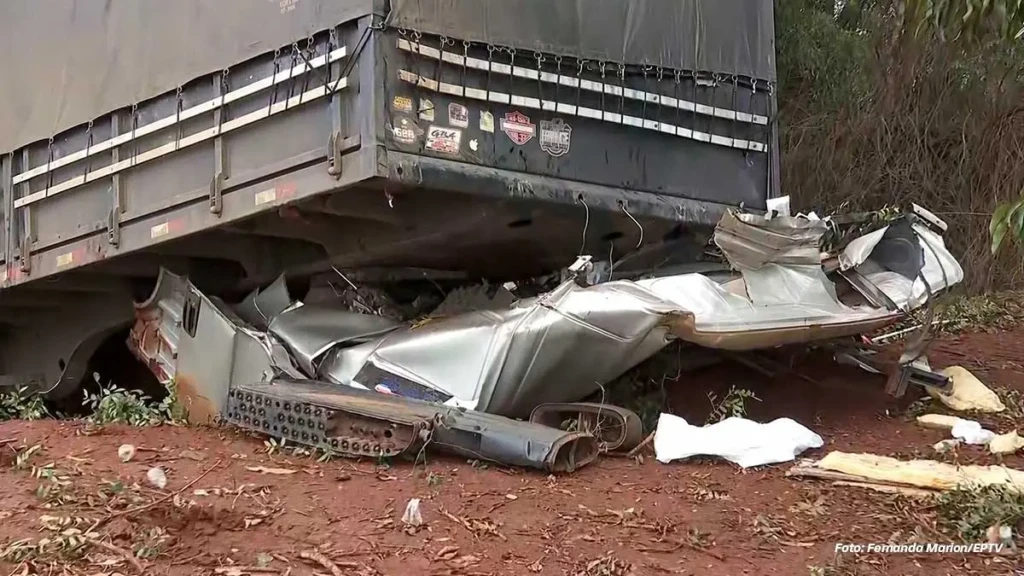 O veículo havia saído de Sertãozinho e acabou caindo em uma passagem subterrânea utilizada para a travessia de animais silvestres. O impacto foi intenso e comprometeu totalmente a estrutura da cabine.