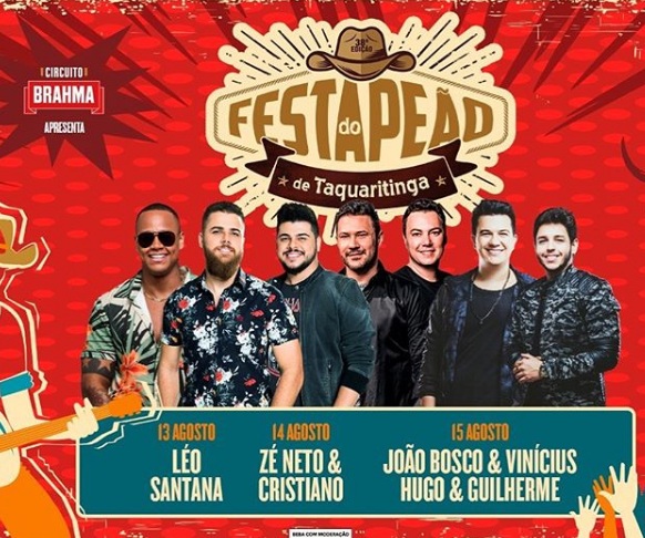 Considerados um dos pioneiros do estilo ‘Sertanejo Universitário’ no Brasil, João Bosco & Vinícius prometem encerrar a festa no dia 15 de Agosto (sábado) com chave-de-ouro. A dupla já esteve em Taquaritinga em anos anteriores e atraiu grande público em todas as apresentações, sendo a última feita na 32° Festa do Peão, em 2014. Hugo e Guilherme também estarão no palco no último dia de festa cantando os sucessos “Namorada Reserva” e “Conveniência”.
