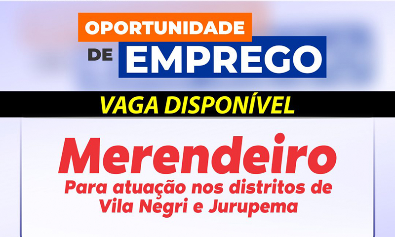 O Posto de Atendimento ao Trabalhador (PAT) de Taquaritinga, informa que há vaga disponível para Merendeiro para atuação nos distritos de Vila Negri e Jurupema.