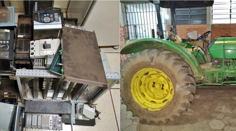 A Polícia Militar de Taquaritinga (SP) apreendeu, na madrugada de sábado (24 de Agosto), um trator da marca Jhon Deere e mais de trinta peças de equipamentos eletrônicos que estavam armazenados em uma chácara na área rural do município.