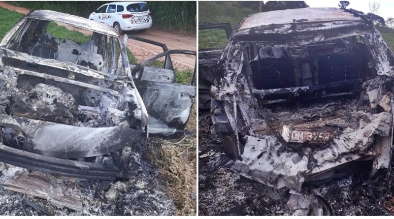 A Polícia Militar de Taquaritinga (SP) encontrou um veículo totalmente incendiado em uma propriedade rural da cidade na tarde desta quarta-feira (15).
