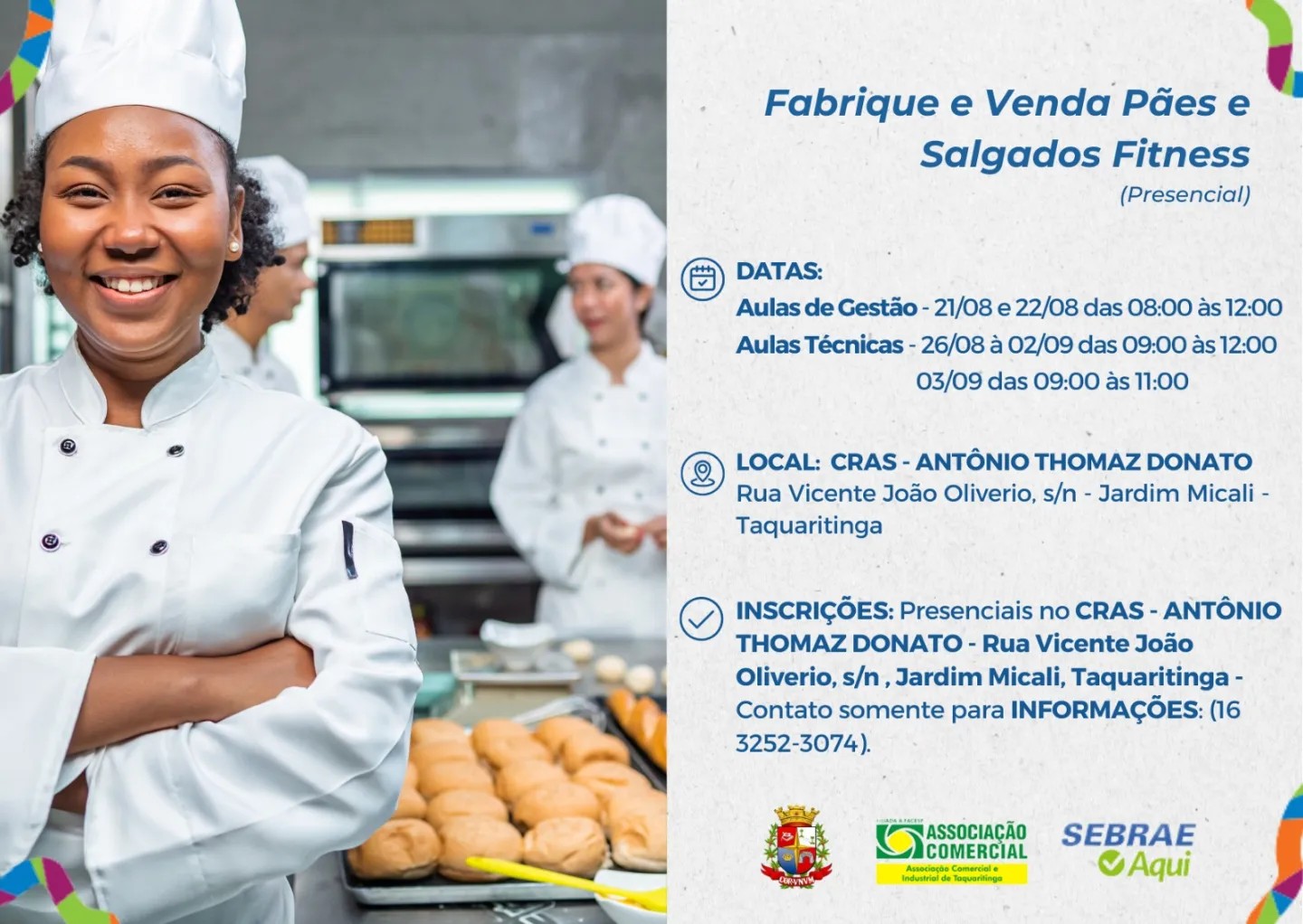 A Prefeitura Municipal e a Associação Comercial e Industrial de Taquaritinga (ACIT) através do Sebrae Aqui, promovem o Curso de Qualificação Técnica do SENAI – Fabrique e Venda Pães e Salgados.