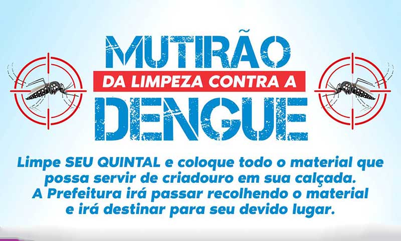 A Prefeitura de Taquaritinga, em parceria com o Departamento Municipal de Controle de Vetores (DEMCOVE), iniciará na terça-feira (19) um mutirão de limpeza contra a dengue em vários bairros da cidade. A ação tem como objetivo eliminar os possíveis focos do mosquito Aedes aegypti, transmissor da dengue e outras doenças.