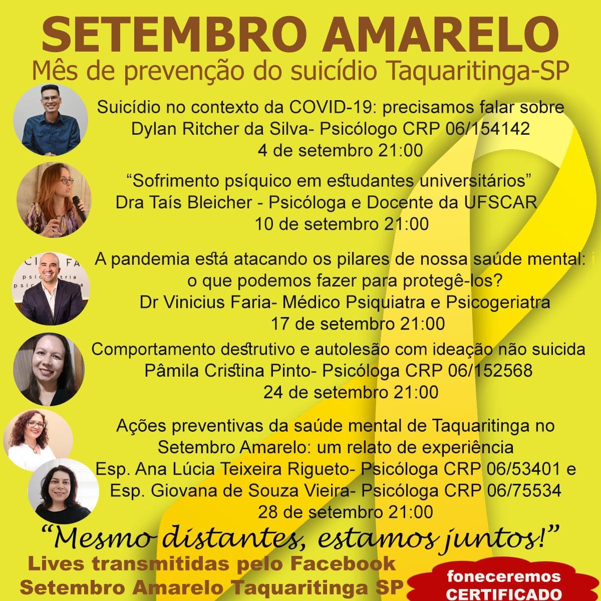 #SetembroAmarelo: Com o tema ‘Mesmo distantes, estamos juntos’, profissionais realizam ciclo de palestras online gratuito em Taquaritinga (SP)