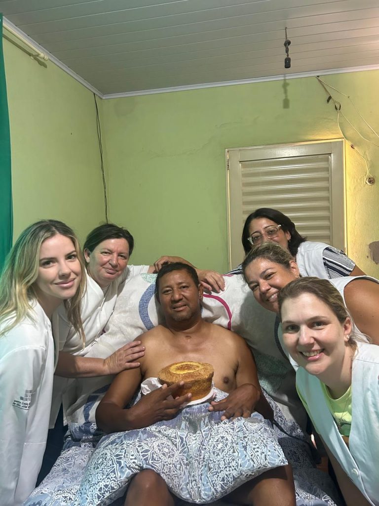 Além disso, em um gesto de carinho e humanização, a equipe do Serviço de Atenção Domiciliar (SAD) do município promoveu uma festa surpresa de aniversário para o paciente Leinaldo Batista dos Santos, que completou 44 anos. A equipe do SAD desejou muita felicidade e saúde para esse guerreiro, que recebe o acompanhamento domiciliar da equipe multiprofissional.