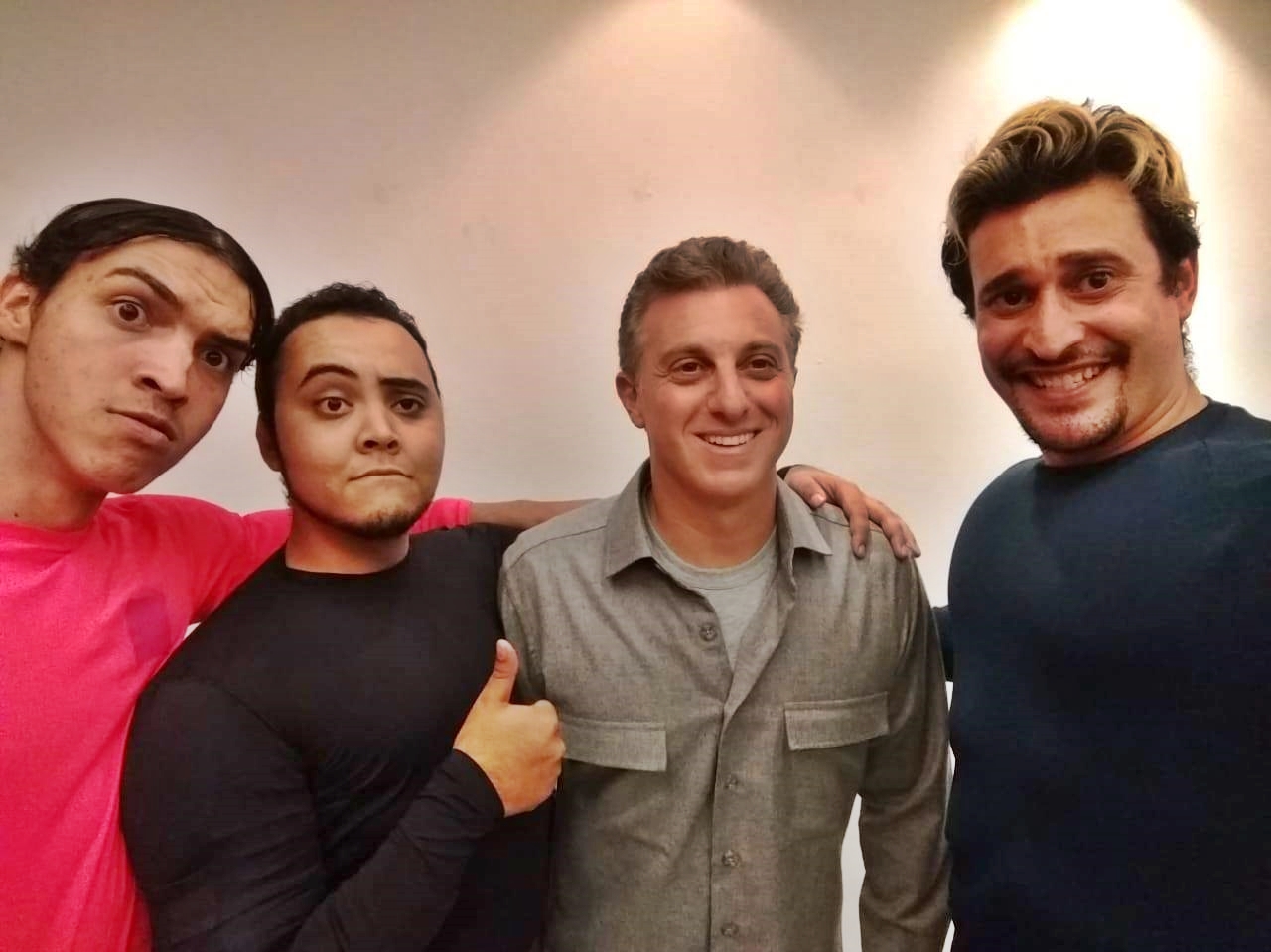 Ruan Reis, Kevin Alan e Leandro Ferreirinha com o diretor da atração, o ator e comediante Rafael Queiroga
